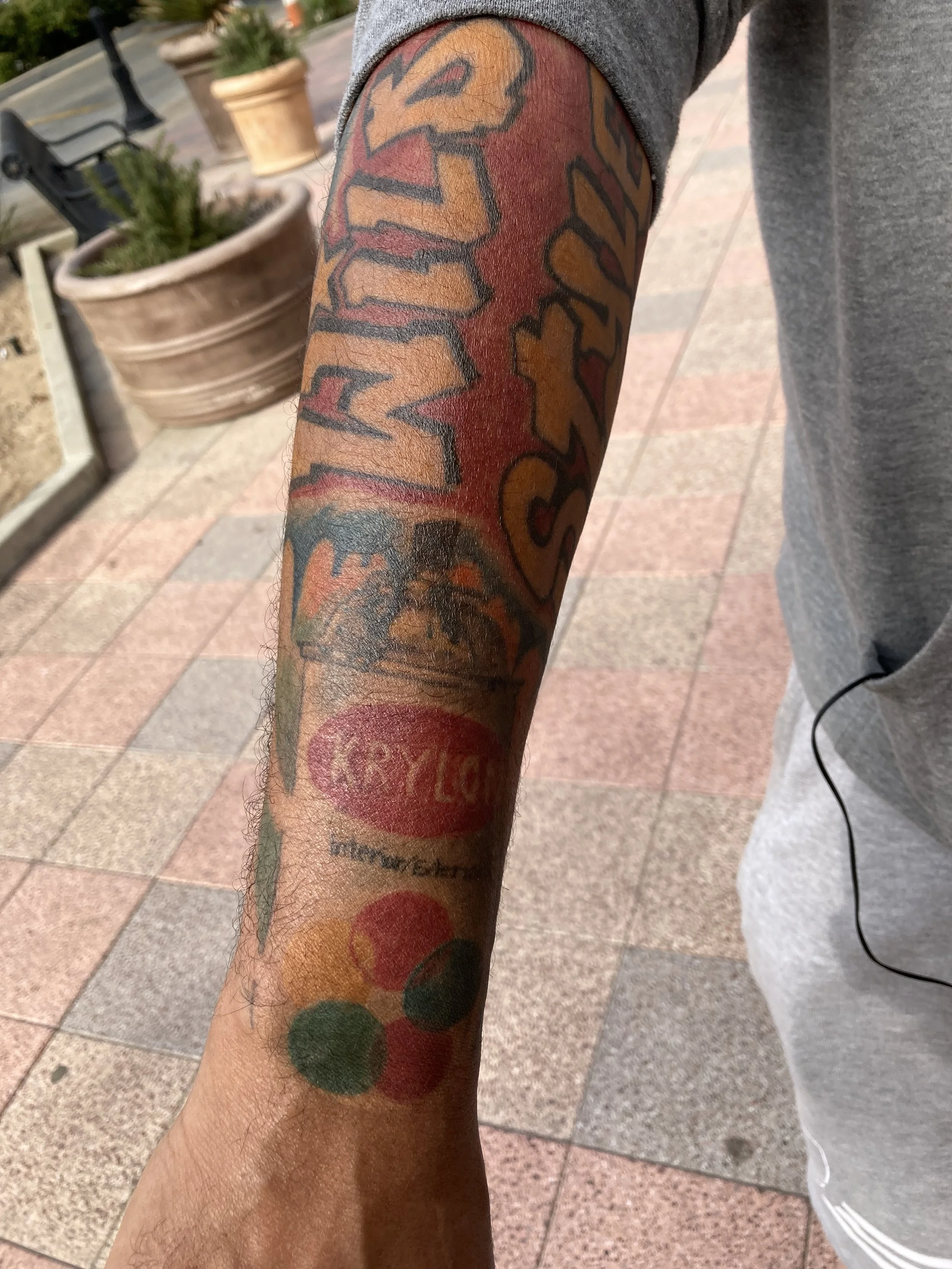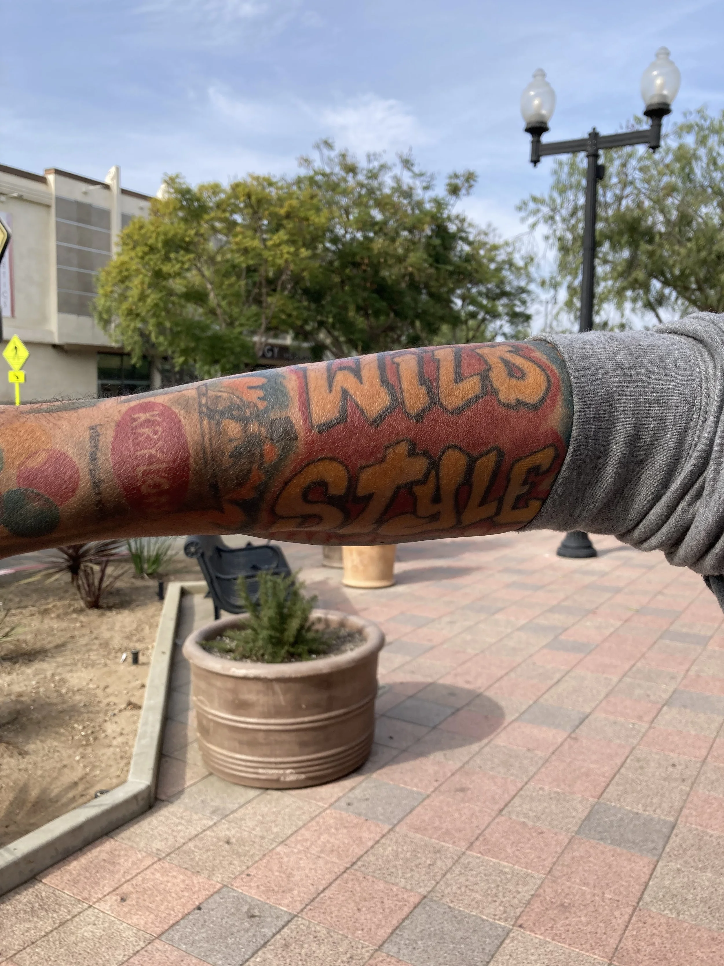 Portrait: krylon spray can tattoo and wild style documentary tattoo.